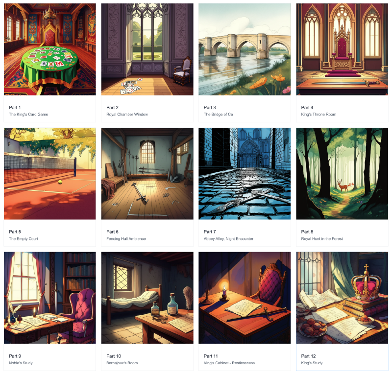 The selector chose the most diverse and narratively appropriate ideas, which were then generated using our reference image and style guidelines, producing illustrations that maintain visual consistency while telling the story effectively.